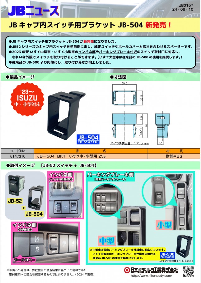 JB0157 JBキャブ内スイッチ用ブラケット JB-504 新発売!