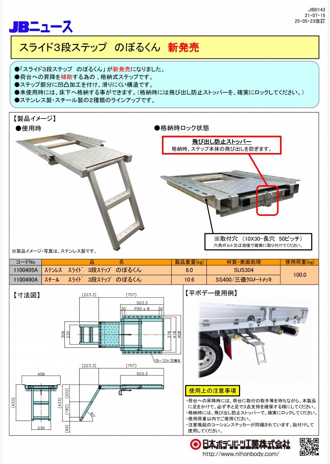 JB0169 ステンレスワイドフォルディングステップ 新アイテム+リニューアル!
