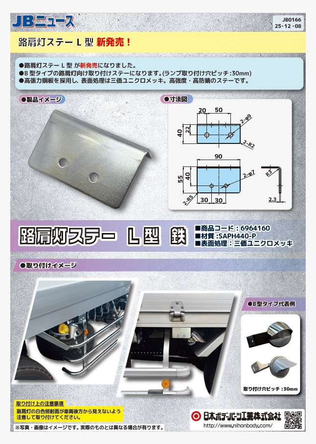 JB激光LEDシリーズの角BIGマーカー専用、トラクタ用サイドランプステーが新発売になりました。4ディーラー各社のサイドバンパーにそのまま取り付けできます。