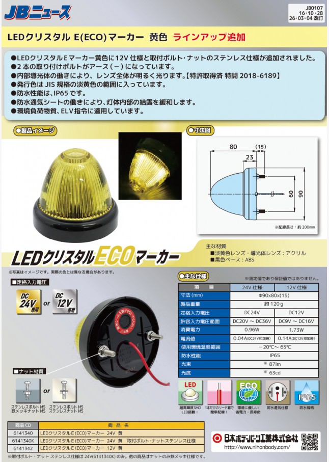 JB0107 LED クリスタル E マーカー 黄 ラインアップ追加