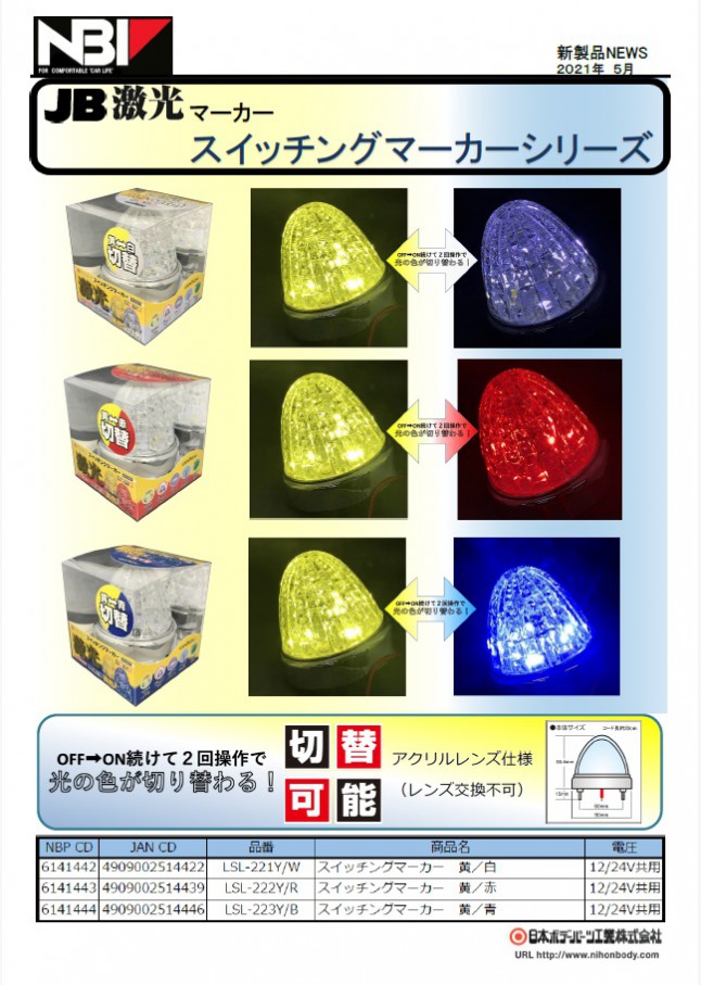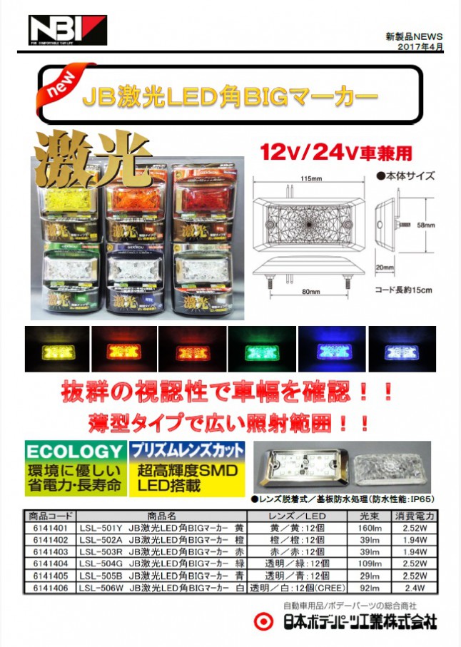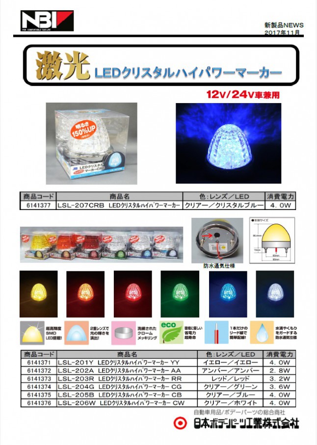 薄型タイプのLEDマーカーランプです。全6色。DC12/24V共用タイプです。