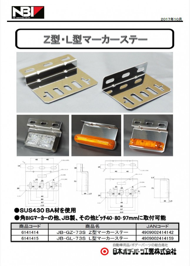 角BIGマーカーや、その他ピッチが、40・80・97mmの商品が取付け可能です。Z型、L型をご用意しました。SUS430 BA材を使用。