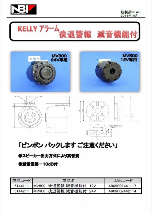 低音、中音、高音の三種類の音色が選べます。DC24V専用。車検対応品です。
