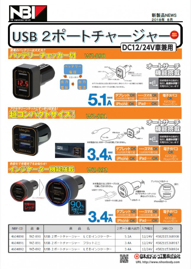 USB 2ポートチャージャーが3アイテム新発売