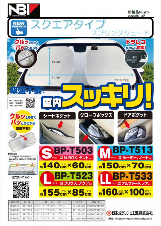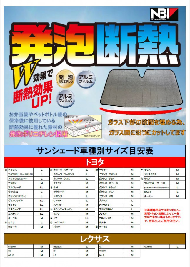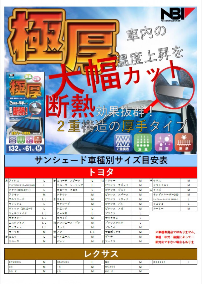 【23年度】NBP スプリング(スクエアー)サンシェード 目安表
