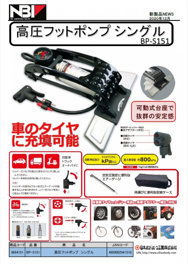 車のタイヤに充填可能。便利な収納ケースに、エアーゲージが付属します。
