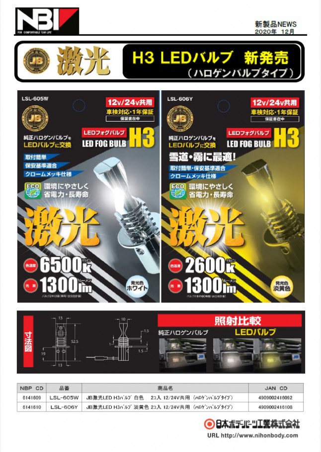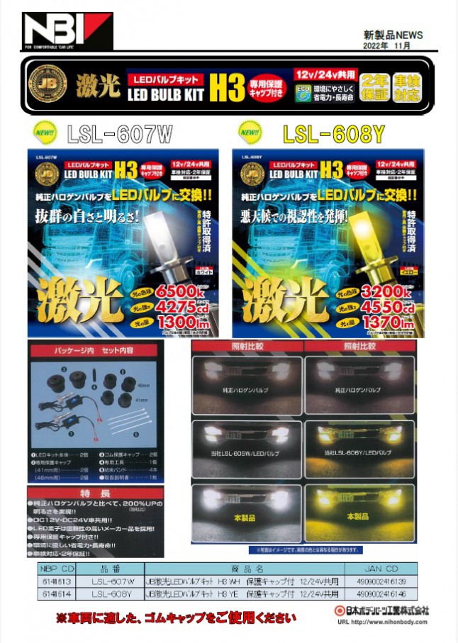 H3 LEDバルブに専用保護キャップがセットになりました。