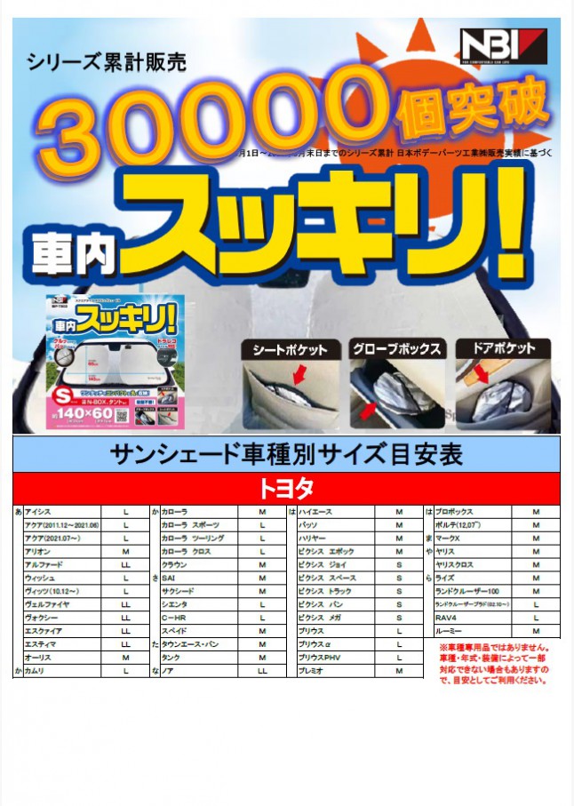 【22年度】NBP スプリング(スクエアー)サンシェード目安表