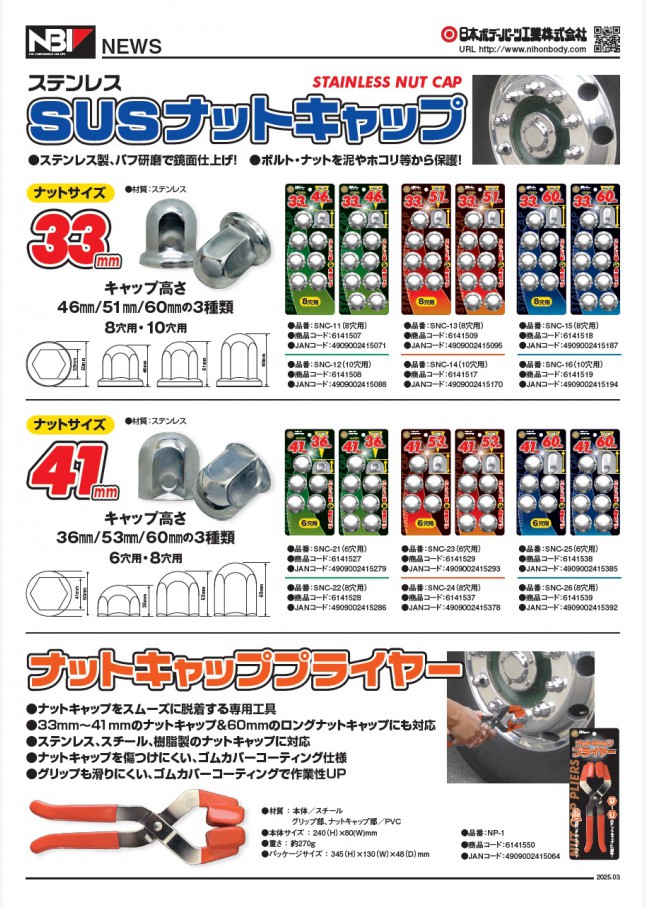 ステンレス製バフ研磨で鏡面仕上げのナットキャップ 全12アイテムとナットキャッププライヤー