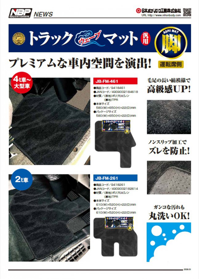 トラック車内に馴染む高級感で、じゅうたん調の高級感のある生地素材採用しております。汚れたら丸洗い可能です。