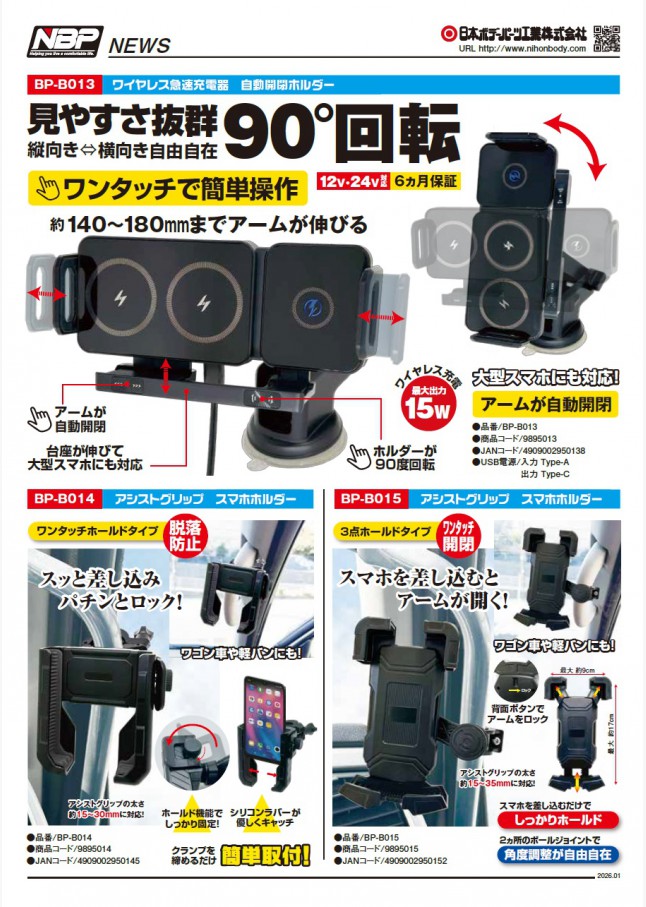 見やすさ抜群の90°回転式ホルダーとアシストグリップ取り付けタイプ2機種が新発売